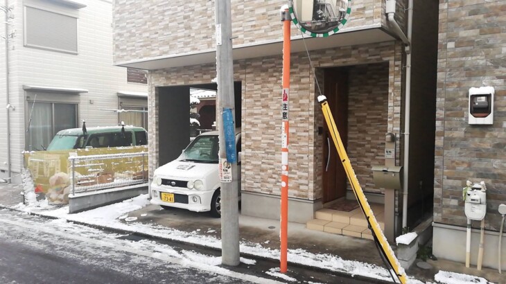 朝一番は温泉。キッチン天井の照明電気工事を行いました。キッチン天井にはダウンライト3個とダクトレール(1m)を設置予定。その配線とスイッチを取り付けました