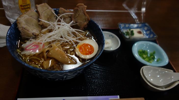 今日は18時ころに作業終了。温泉に入り、夕食は仙谷右京。チャーシューワンタンラーメン(1500円)を頂きました。
