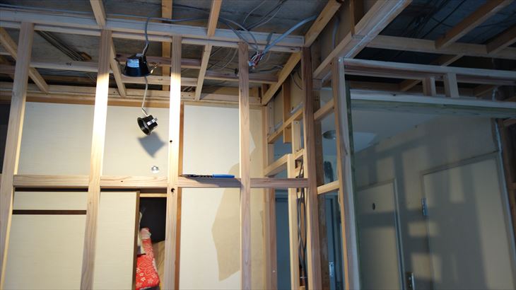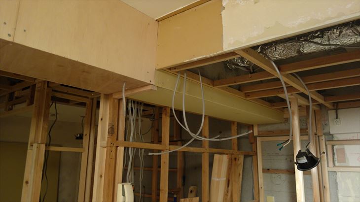 1月9日:旧和室の電気工事と梁下地作業