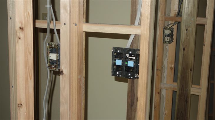 旧和室の電気工事、ダクトレールとダウンライト用の配線とスイッチ設置。ダウンライト用スイッチ、調光にする考慮不足がありやり直したので時間かかった。