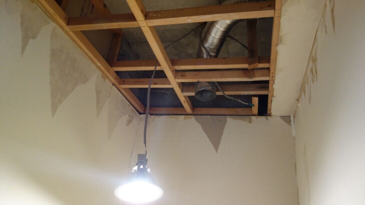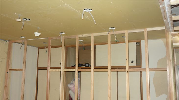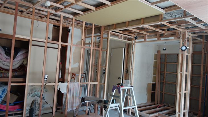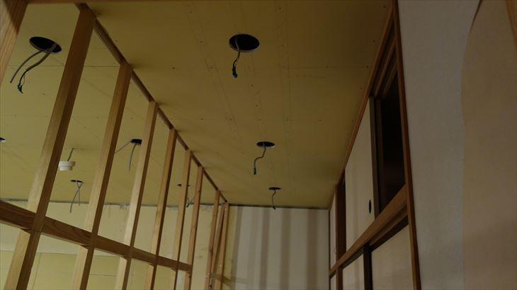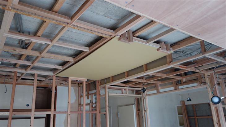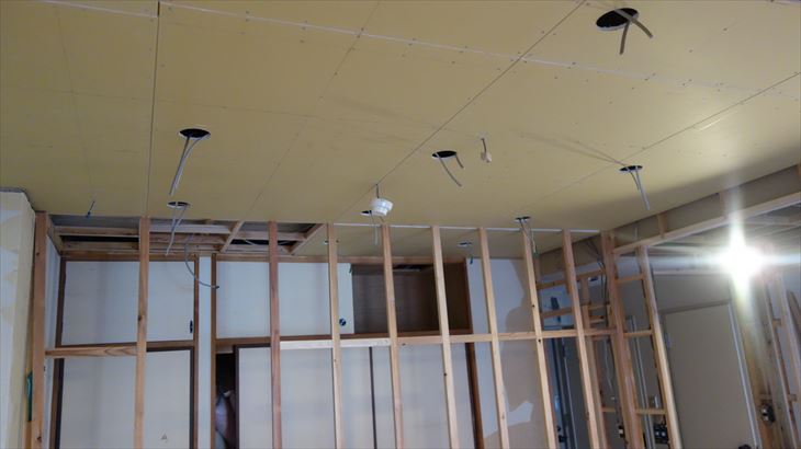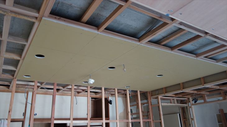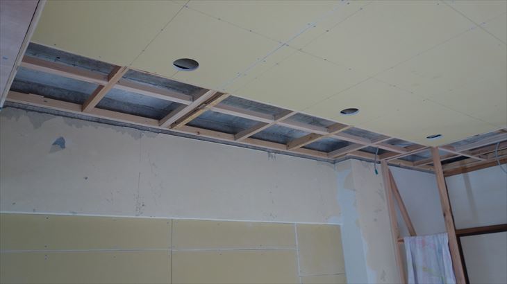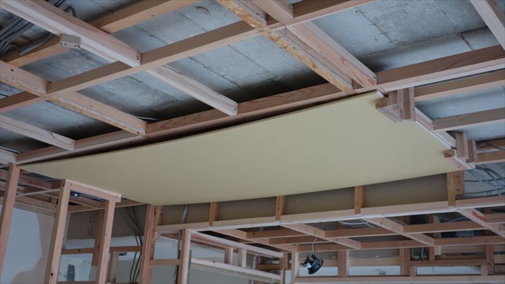 和室天井に石膏ボード貼り