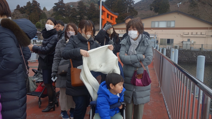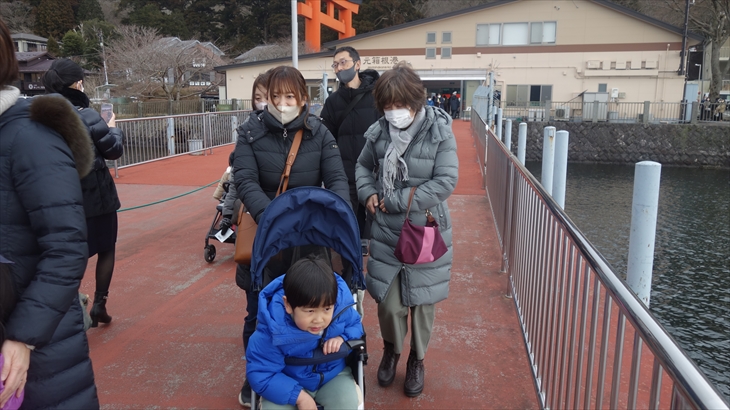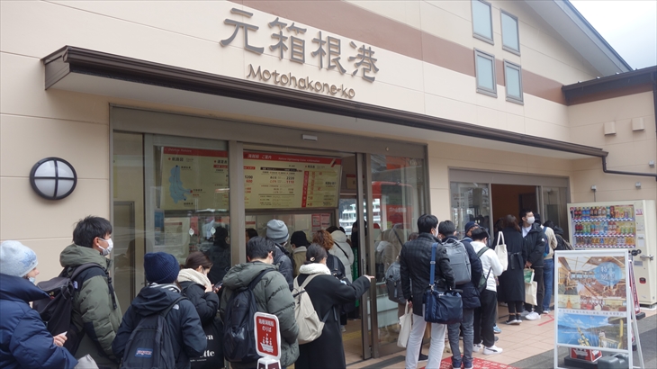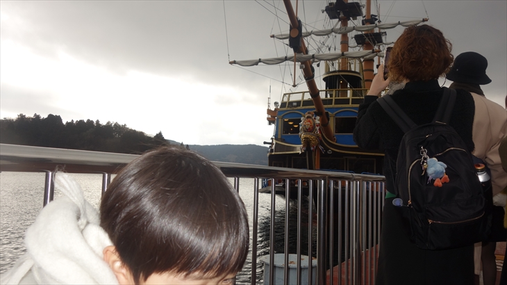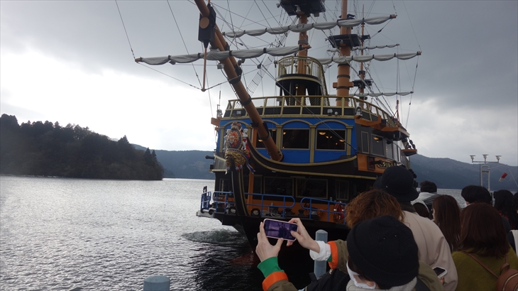 気を取り直してもう少し遊んで、13時30分の元箱根行きバスに乗り込みました。元箱根に到着したのは13時44分、そこから少し歩いて海賊船乗り場を見つけました。