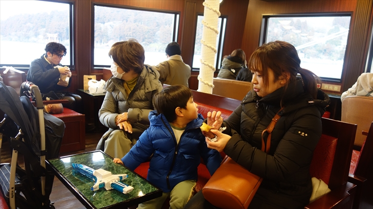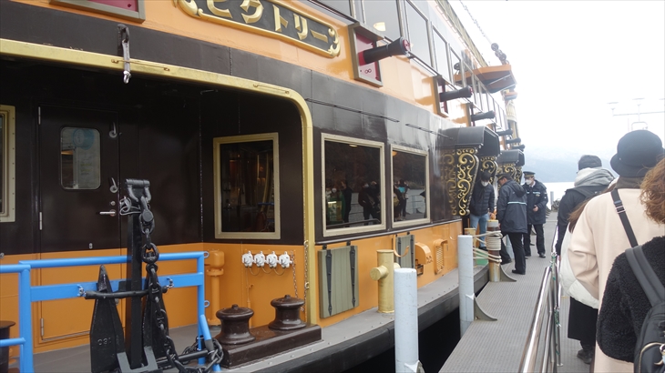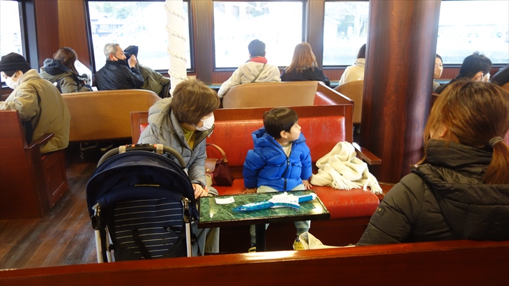 海賊船が寄港すると、特別チケットのお客さんから乗船でき、特別席船内は満席でしたが立っている人はいません。景色がとてもよく眺めることができる海賊船、利太朗くんはどのような感想だったのでしょうか?