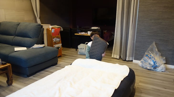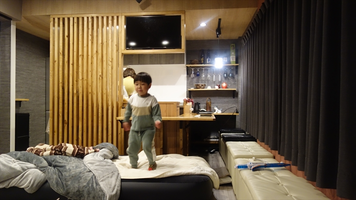 16時にマンション到着、送迎サービスは18時にお願いしました。その間の2時間はお部屋と温泉でゆっくり、利太朗くんは約1時間ぐっすりお昼寝しました。