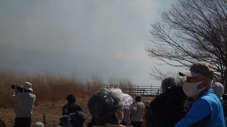 たくさんの人がいました。12時ころで山焼きはほとんど終盤、火が勢いよく延焼したのを見れたのは5分程度でした。