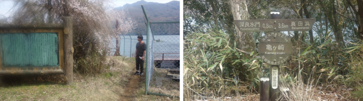 ハイキングコースは獣道のようなところもありました。高低差はないけど長い道のり、綺麗な浜辺に降りて写真撮影、鴬の鳴き声や白鷺を鑑賞、少し休憩したり最後のチェックポイント「白浜」に到着したのは14時4分でした。