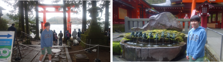 お天気も少し雨降り、車で箱根神社に行きました。トシ君の高校入学をお願いして、湖の上に浮いてる鳥居の前で記念撮影。ここは有名な撮影スポットらしく沢山の外国の方の行列がありました。