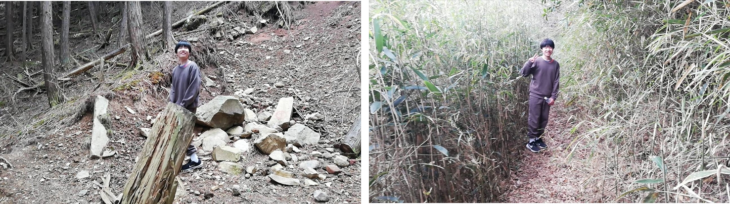ここから亀ヶ崎までは車が通れるくらいの道でしたが、そこから小杉の鼻までの約2kmは道幅がとても狭くなり一歩間違えると大変なことになる危険な道です。