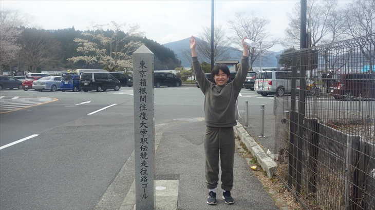 ここからゴール地点までの約2kmは車が通れる舗装された道です。箱根駅伝のゴール地点に到着したのは14時32分、約3時間かけて12kmの芦ノ湖西湖畔ハイキングは終了しました。