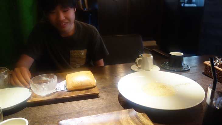 今日は8時ころ起床、温泉に入り9時30分ころ私のお気に入り「RIPOSO」でモーニング。私はサンドイッチ、トシ君はサンドイッチとドリアの2つ。
