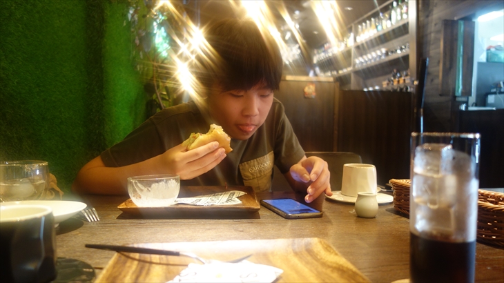 少し遅めの朝ご飯は仙石原の「LUDERA」で本格ハンバーガー。2000円のハンバーガーはトシ君初めて、頑張って食べました。