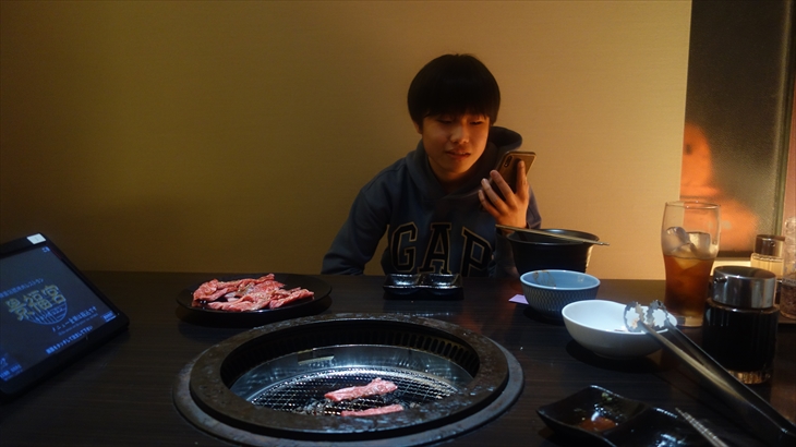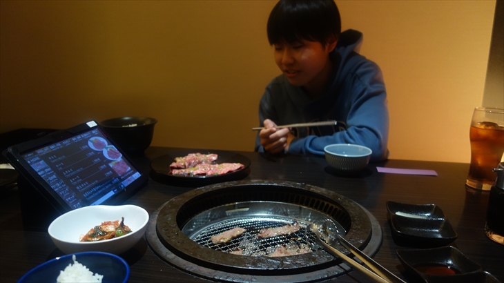 本12kmハイキング達成したので「今日は少し贅沢しても良いと思うので焼肉」とトシ君のリクエストで決定しました。生ビールとウーロン茶で乾杯。