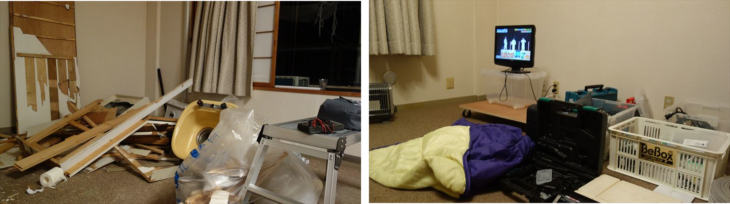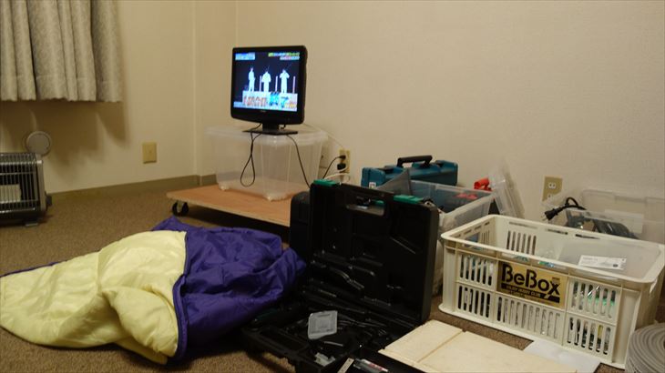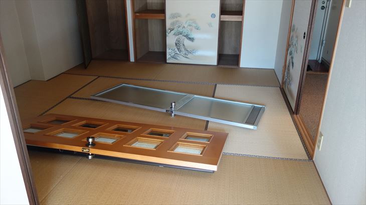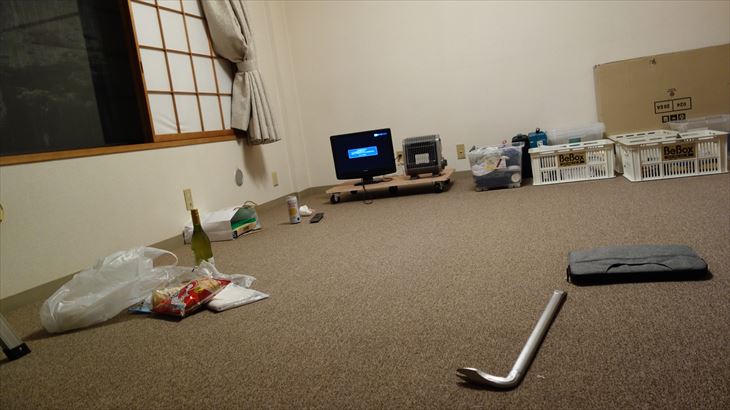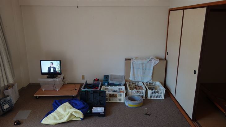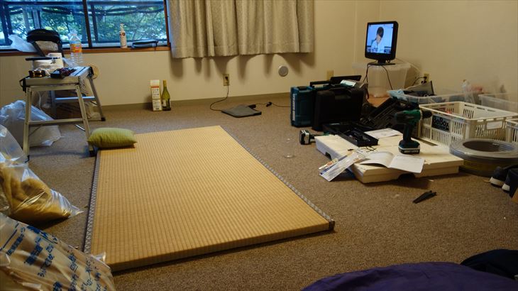 絨毯の上に畳を敷いて、押入れに入っていた小さなマクラで少しは寝心地がよくなりました。布団はあった方が良いかもしれません。