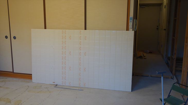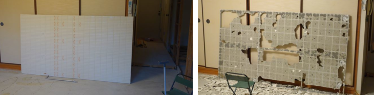 ユニットバス解体した4枚の壁(幅130cm、高さ200cm)にはタイルが接着されているのでとても重く、一人では搬出は難しいこと、産業廃棄物として廃棄すると重いので、廃棄金額が高くなると想定され、タイルを剥がすことにしました。