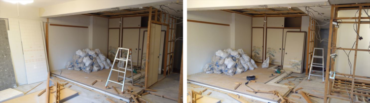 今週の目標は和室解体と廃棄物(産業廃棄物、ユニットバス等)の撤去です。本格的に開始したのは11月になってから、約2週間で解体がほぼ完了する感じ。予定は1ケ月だったので予想以上に速い。