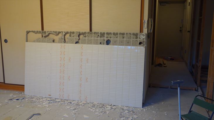 ユニットバスの壁タイルはがし