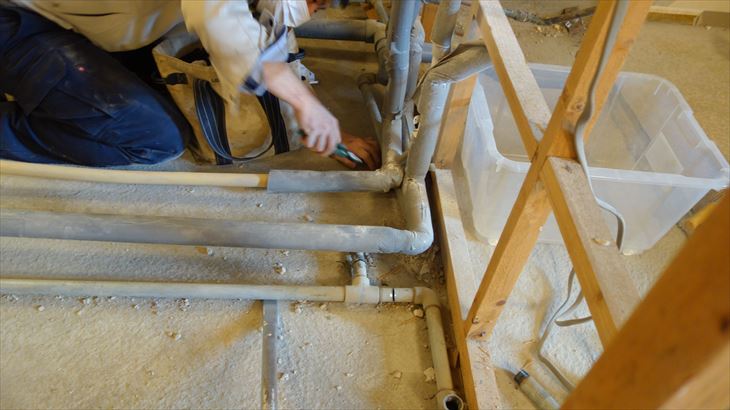 10時ころレモンガスの方が来ました。キッチンのガス管撤去だけという軽い気持ちでやってきましたが、「ガス暖房用の配管も安全のために外してほしい」というと大変な作業。