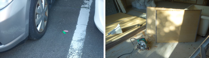 前回捨てられなかった発砲スチロールと前所有者の残地物(段ボール)と畳2枚を切断して午前中に箱根環境センターで廃棄しました。今回は20kgで540円。朝、部屋の鍵が見つからなかったですが、車の横に落ちてるのを発見しました。
