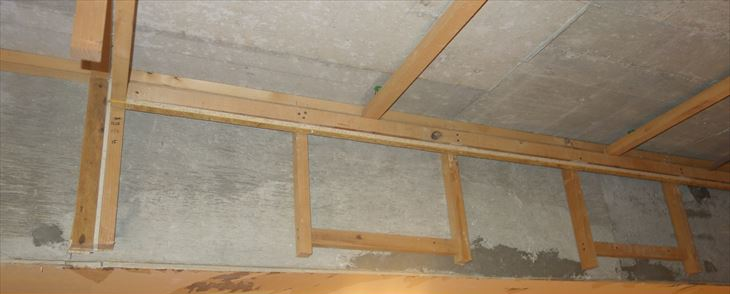 室内で作業できたのは17時ころ、和室天井に石膏ボードは貼り付けするために下地材1本の取付を初めて行いました。こらは解体以外の初めての作業です。