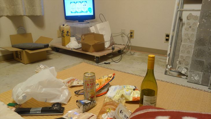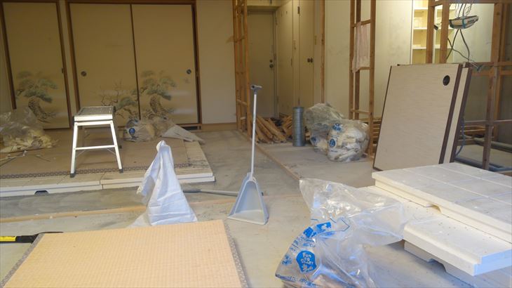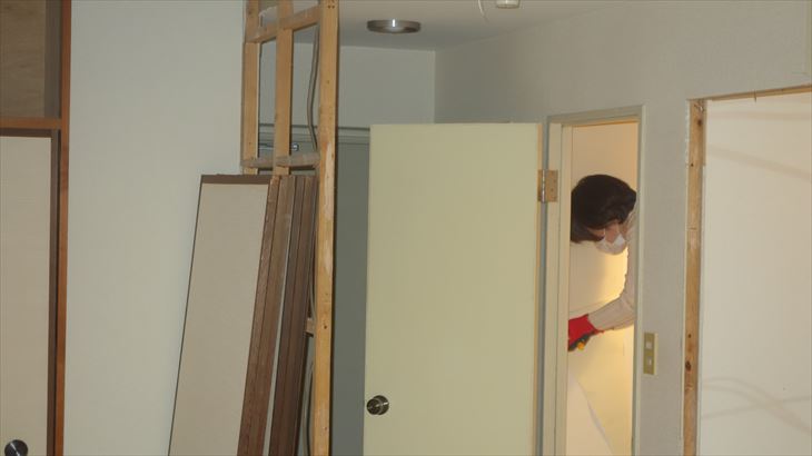 律子はトイレの壁紙はがし、私は和室の未処理石膏ボードの撤去作業を約2時間くらい行いました。