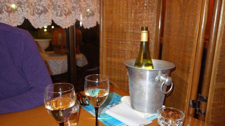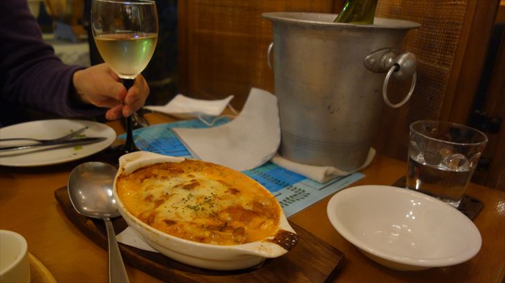 18時30分ころから、目の前のイタリアンレストランで夕食。白ワインボトルを注文、前菜5種盛り、ラザニア、マルゲリータでお腹一杯になりました。夕食後、コンビニでワインとおつまみを購入し、部屋で2次会。