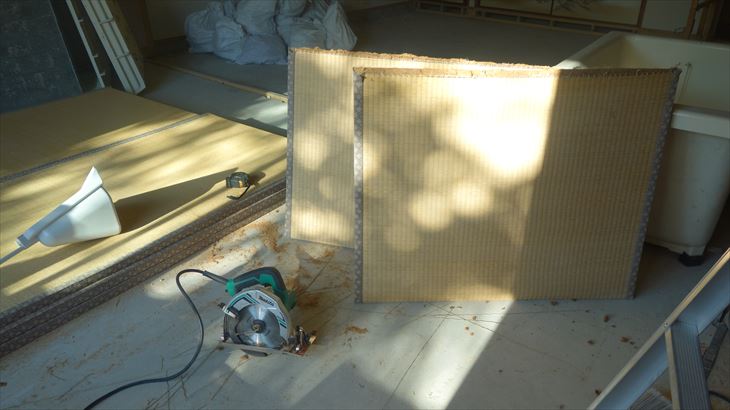 律子さんは前回残作業(床断熱材解体)と引き続き壁紙はがし、17時ころまで頑張って温泉に入り17時54分のバスで帰宅しました。その後、畳の撤去とジャリの土嚢入れ、襖を含めた廃材を車まで詰め込んで本日の作業は終了です。