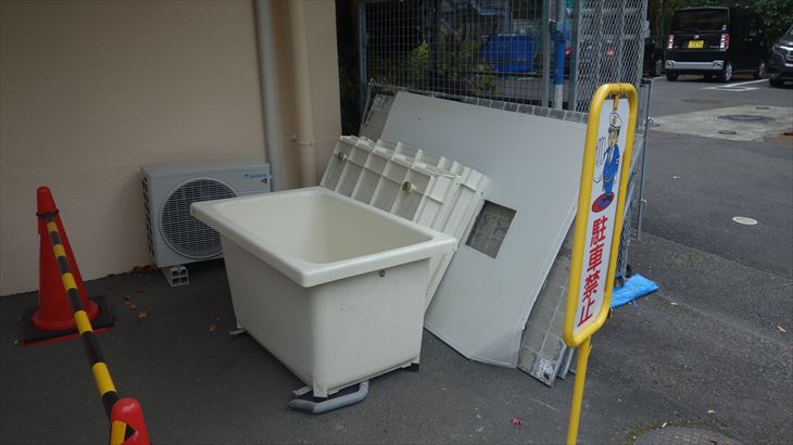 15時ころ、箱根町産業廃棄物指定業者「箱根美掃」さんが解体されたユニットバスを確認。前日までに1階まで運び出しておくことを前提にした見積額は22、000円(税込)、11月19日(金)のPM1:30に撤去となりました。