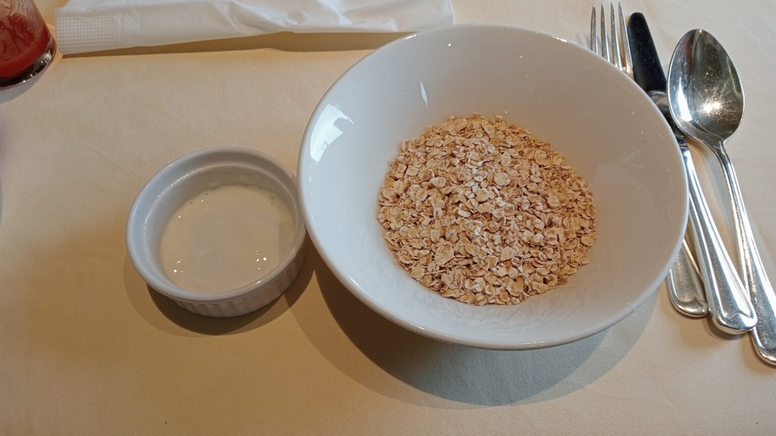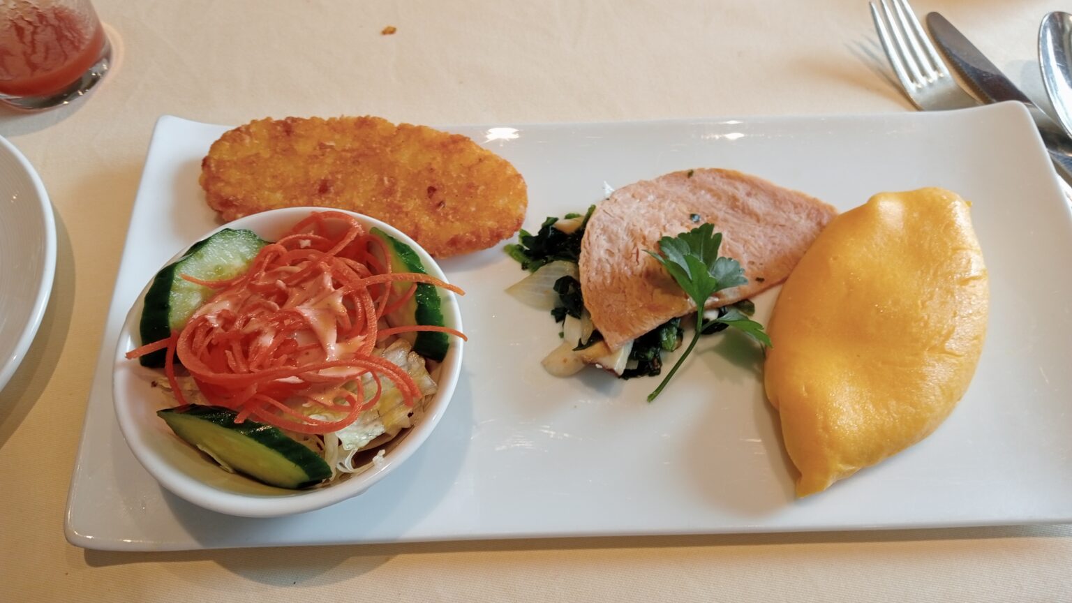 本日は4時30分起床、シャワーを浴び7階のお気に入り作業所に5時に到着。約1時間くらいブログ作成を行い、朝の散歩としてデッキを一周しました。朝食は7時30分ころ洋食にしてみました。相方は朝食パスのようです。
