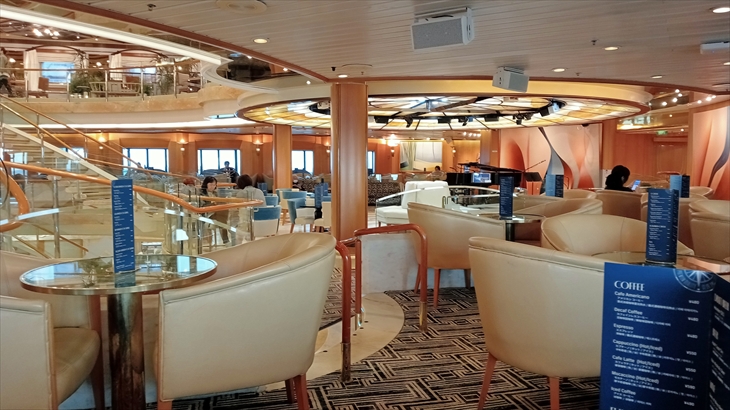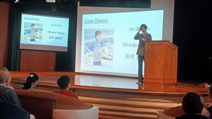 12:45分から30分の講演を聞きにいくために7階のビスタラウンジ(船尾方向にある)に15分くらい前に行きました。観客はまばらでしたが開演するころには満席になっていました。
