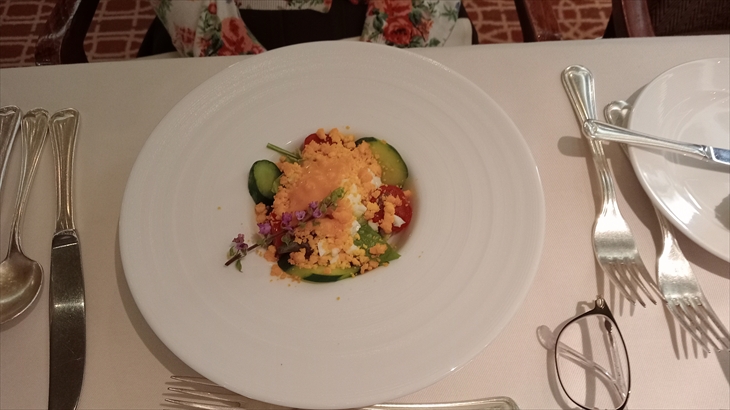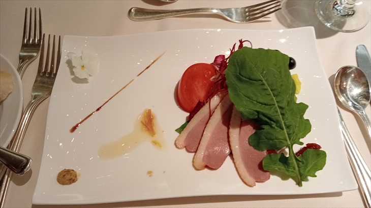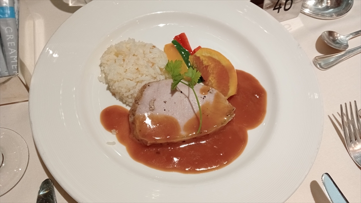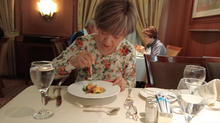 3組のご夫婦と単独2名の8名、最初は話はしませんでしたが、後半にオプショナルツアーの話で少し盛り上がりました。洋食は普通ですね。