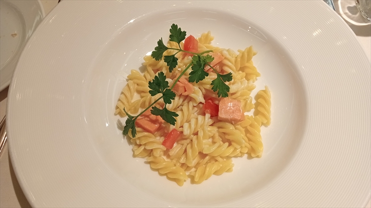 ショータイムの後は、14階で調達したおつまみをテイクアウトし部屋でワイン。3日間同じメニューの洋食コースを本日も頂きました。
