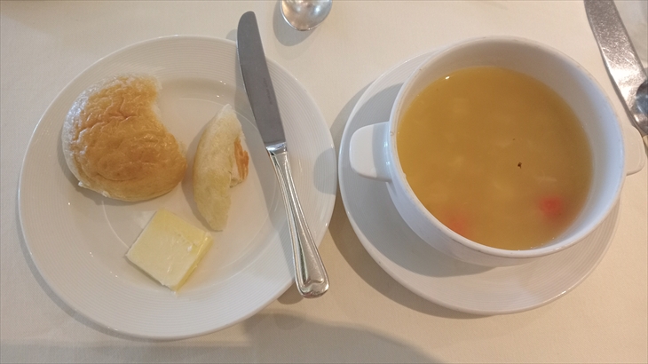 昼食は6階のレストランでコース料理を頂きました。ランチも3日に一度メニューの変更があるようです。前菜、スープ、パスタ、魚、肉、デザートそれぞれ2~3種類から選べるので、マイコース3日間同じでも違ってもヨシ。単品のみもアリ。