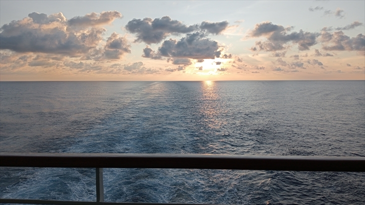 2025年5月3日(土)11日目の朝のお天気は晴れ、南シナ海を南下中です。昨晩のカラオケにパワー注入し朝起きるのが少しつらく、6時ころからの行動開始となりました。まだ日本との時差は1時間です。