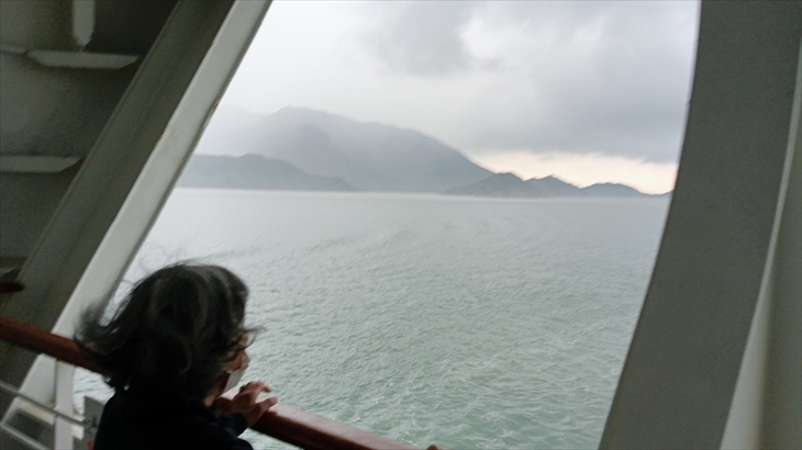 朝5時前に7階でブログ作成、デッキを一周して、7時30分ころ和食の朝ご飯です。船は香港を通過し深センの港に誘導するタグボートを朝食会場の窓から見かけました。