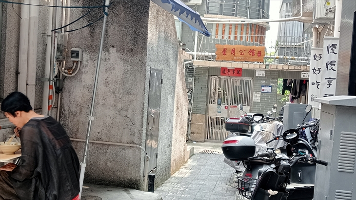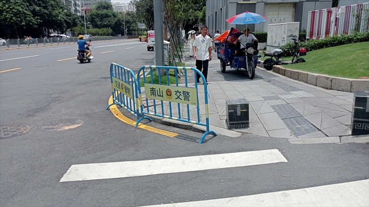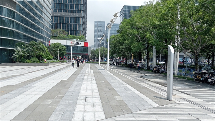 15分ほど地下鉄に乗り「中山公園」駅から南头古城に向け街歩きをしました。最初にびっくりしたのは車道・歩道n道幅が広く、バイクの歩道通行は許可されてること(合理的)です。
