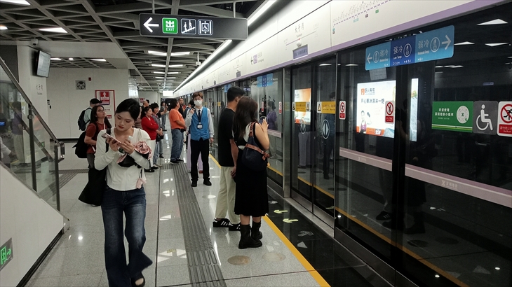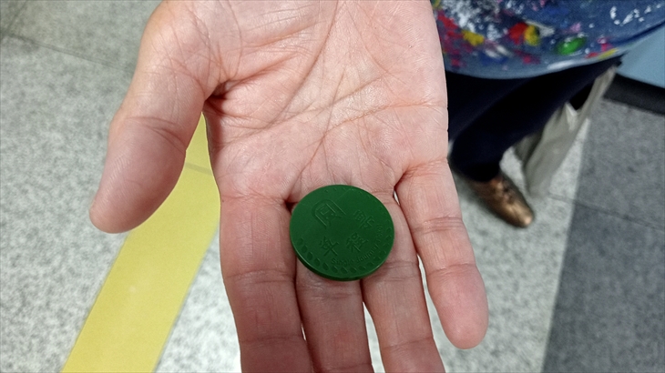 「太子湾」駅の自動発見売り場で切符購入にチャレンジしましたが紙幣NGだったので、改札口近くに人がいるところで切符(コイン)を購入しました。驚いたことが2つ、地下鉄に乗るだけなのに空港なみの手荷物検査(x線)があること、切符は紙ではなくプラスチック製のコインで入場するときはコインをかざすとゲート開放、出場するときはコインを入れるとゲート開放といった仕組み、ビックリです。