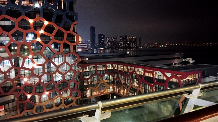 2025年4月28日(月)6日目の朝のお天気は曇りです。船は香港の沖合を航行中、初めての寄港地(深セン)に向け順調に航海しており、予定とおり10時ころに深センクルーズターミナルに着岸しました。