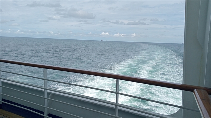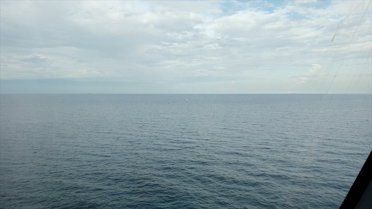 2025年5月5日(月)12日目の朝のお天気は晴れ、マラッカ海峡を航行中です。狭い海峡なので貨物船と行きかいます。日本はゴールデンウイーク後半の子供の日ですね。