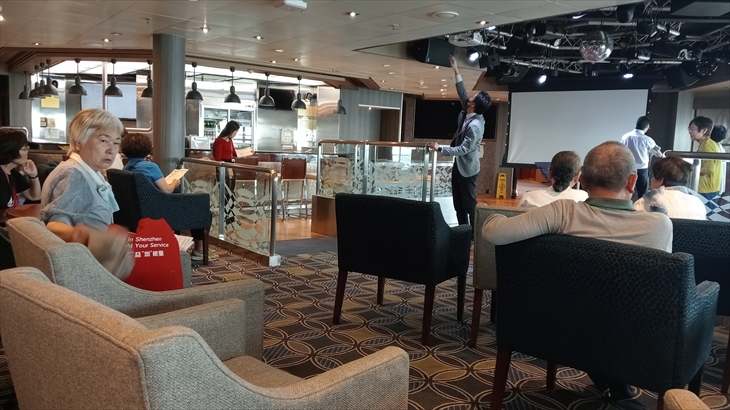 13時からプリンセスシアターで開催された講座を聴講。今回クルーズのテーマはtime for peaceです。幕張メッセで開催された2008年9条世界会議、折鶴プロジェクト、icanなどピースボートが参加した会議の紹介などがあり、その活動の理解を深めました。