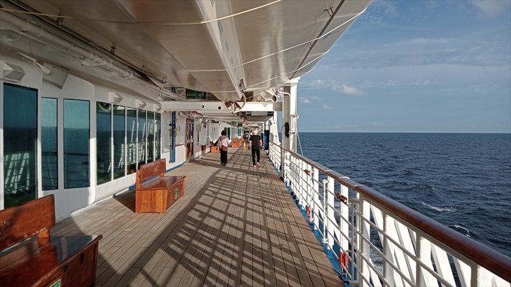 7階デッキの散歩、サウナ、麻雀ルーム、社交ダンス、自主企画の見学など船内散策をしました。
