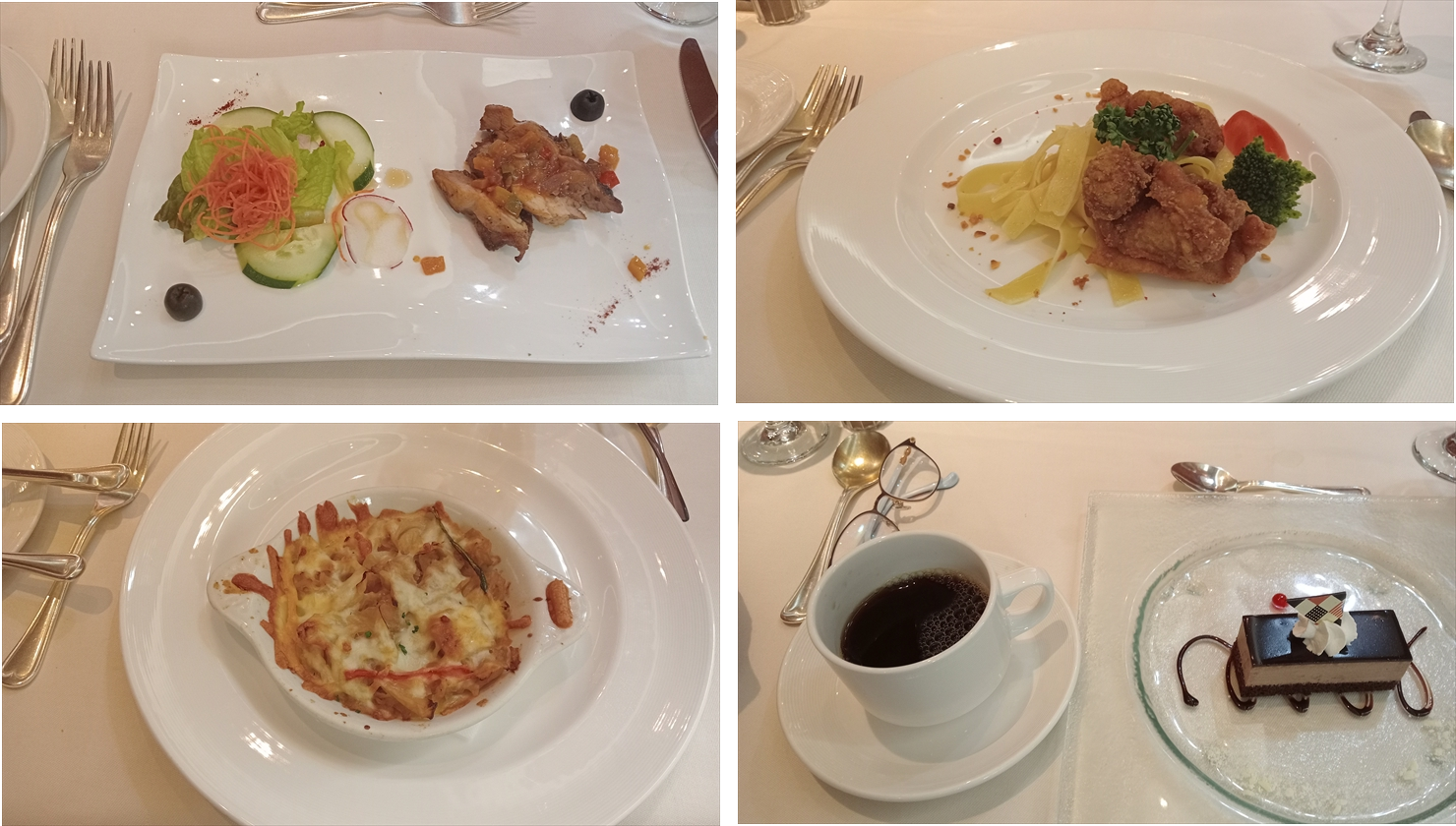 2025年5月10日(土)17日目の朝のお天気は曇り、突然のスコールもありました。今日は船内で開催されるイベントを楽しんだり、久しぶりに夕食をレストランで頂きました。
