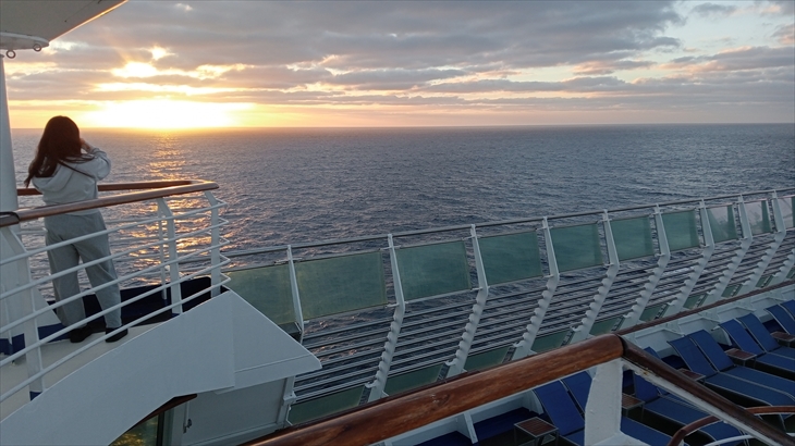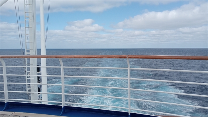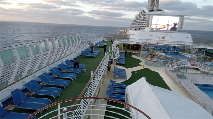 2025年5月25日(日)、次の寄港地カナリア諸島のテネフィリ島(スペイン領)まで11日間の船上生活が続きます。大西洋の寒流の影響で肌寒くなり14階デッキでは半袖の人はもういません。