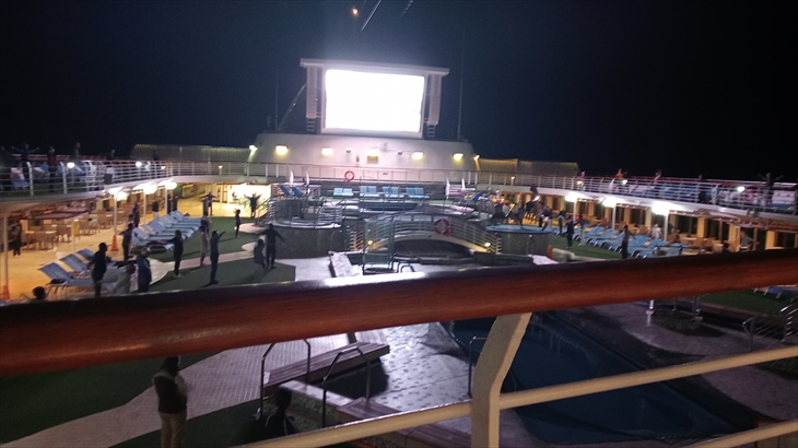 5階レストランで夕食を済ませ、20時40分ころに星空観賞会の会場、12階中央リビエラプールに向かいました。
