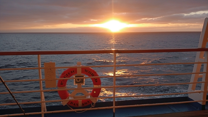 7階デッキ1周散歩の後、アフリカ大陸東の空からの日の出を右舷デッキで撮影しました。ここも、たくさんの人が写真撮影していました。