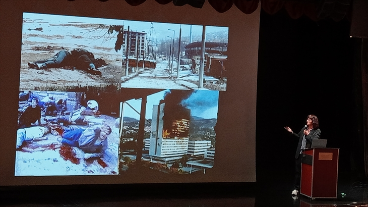 ユーゴスラビア紛争は、ユーゴスラビア社会主義連邦共和国解体の過程で起こった一連の内戦。3年半の間、サラエボは包囲され、そこで生き延びた女性の証言と写真は衝撃でした。私たちが知らない戦争、多民族国家の内戦はメディア、プロパガンダが大きく影響を与えているということを知り愕然としました。戦争難民として逃れ、今はスイスのテレビ局で報道リポーターを務めるジャーナリストです。