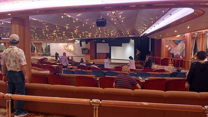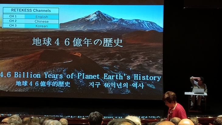 世界遺産の専門家による水先案内人の人気講座、一番大きいプリンセスシアターが満席で立見も出るほどです。地球の成り立ちのビデオ上映でした。ユネスコ30年勤務の実績を感じます。世界遺産350カ所訪問済、500を目指しているそうです。