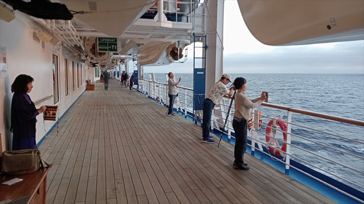 7階デッキ1周散歩の後、アフリカ大陸東の空からの日の出を右舷デッキで撮影しました。ここも、たくさんの人が写真撮影していました。