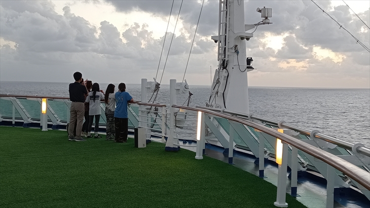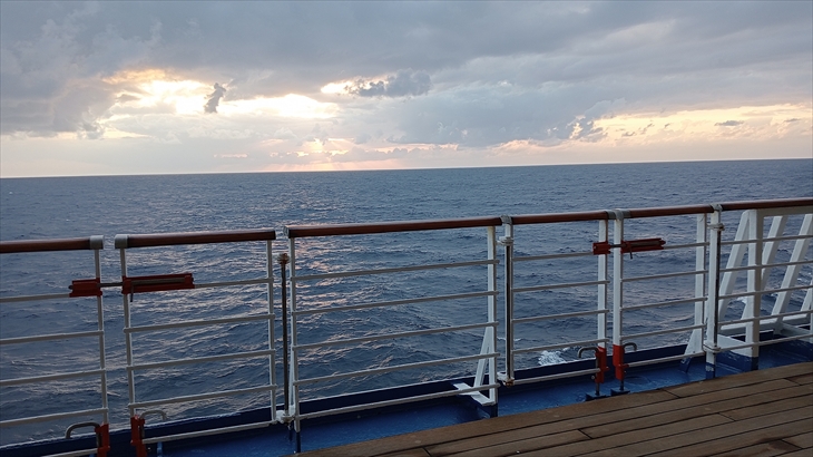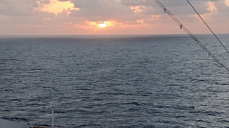2025年5月29日(木)曇り時々晴れ。ずっと波は穏やかで揺れる事もなく、順調に航海を続けています。明日深夜、赤道を超えるのでまた北半球へ戻ります。今度は西経。地球一周を実感し始めています。日の出が8時過ぎ、日の入りが20時過ぎです。もうすぐ時差調整かな。