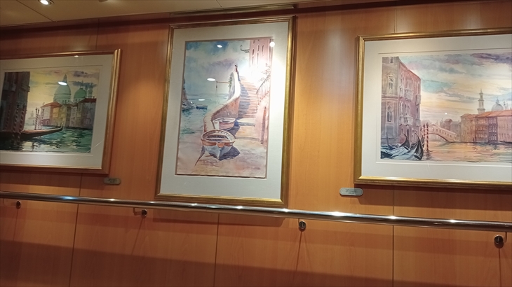 順調に健康サルサ・デッキ散歩をこなしましたが、今日も水平線に雲が多く日の出の撮影は中止。サルサ会場の7階ビスタラウンジにはこんな絵画が飾られています。