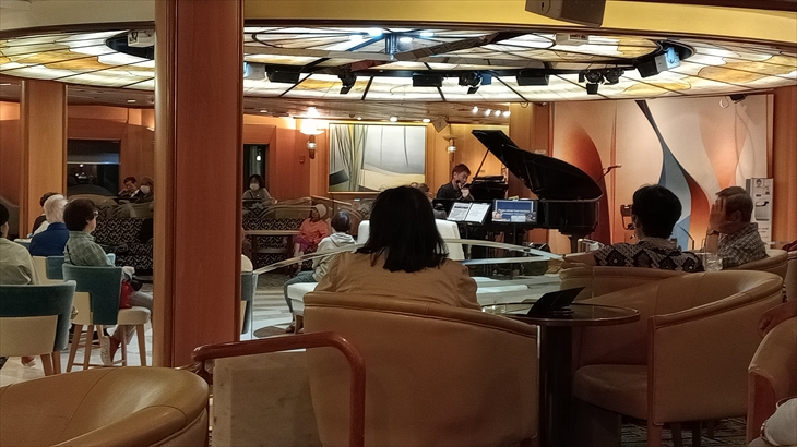 20時45分頃、7階フリースペースで開催されてるトモフミさんのライブ見学しました。人気ライブなので満席です。同席した同い年くらいの女性はポートエリザベスでトリップアドバイザー主催の1泊サファリツアーに参加、「食事も美味しく、サファリも感動で大満足」と言ってました。しかし、深セン・ハロン湾・ポートルイスのジャパングレースツアーの食事は全く美味しくなかったらしいです。プライベートでもその辺りは好みの分かれる所。JGのせいではないような・・確かに南アフリカは美味しいです。部屋に戻ってきたのが11時15分。連絡もつかず熱でうなっているのに、とオカンムリ。